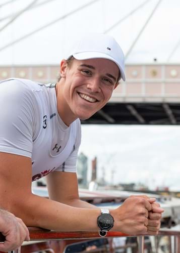 James Berry, 23, from Whitstable in Kent, can usually be found captaining one of our catamarans. However, last Friday James was in a very different type of vessel – a single scull. Every year, apprentice watermen take part in the Doggett’s Coat & Badge Wager, rowing over 4 miles between London Bridge and Cadogan Pier.
